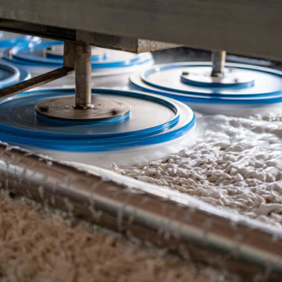 Etiketlenen halılar fabrikamıza ulaştırılır. Fabrikada halılar türlerine uygun yıkama kategorilerine ayrılır. Kategorilere ayrılan halılar tozlarından arındırılmak üzere toz alma makinesine girer.