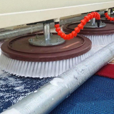 Yıkama işleminin ardından gelberi sıyırma aparatıyla halı tamamen içinde bulundurduğu kirli köpükten arındırılır ve durulama kısmına doğru ilerler. Durulama işleminde halınıza basınçlı su püskürtülerek tamamen ıslatılır. Durulama bittiğinde ise halılar rulo haline getirilerek sıkma işlemine alınır.